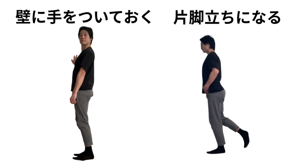 片脚立ちになっている方のお尻と裏ももの筋肉が鍛えられるので、下半身の筋力の左右差を減らす為にも有効です。
