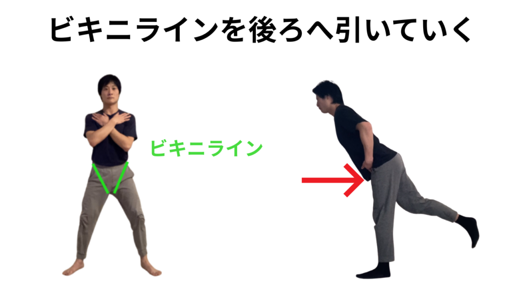 - ・ビキニラインを後ろへ引いていくことで体が前傾する