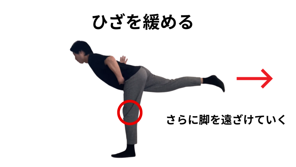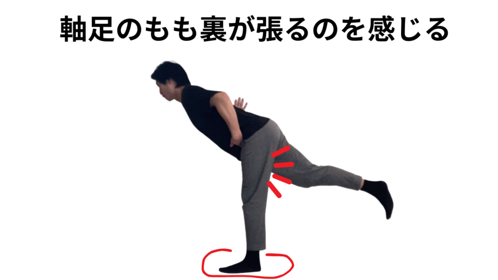 - ・軸足のもも裏の筋肉を縮めるように行いましょう