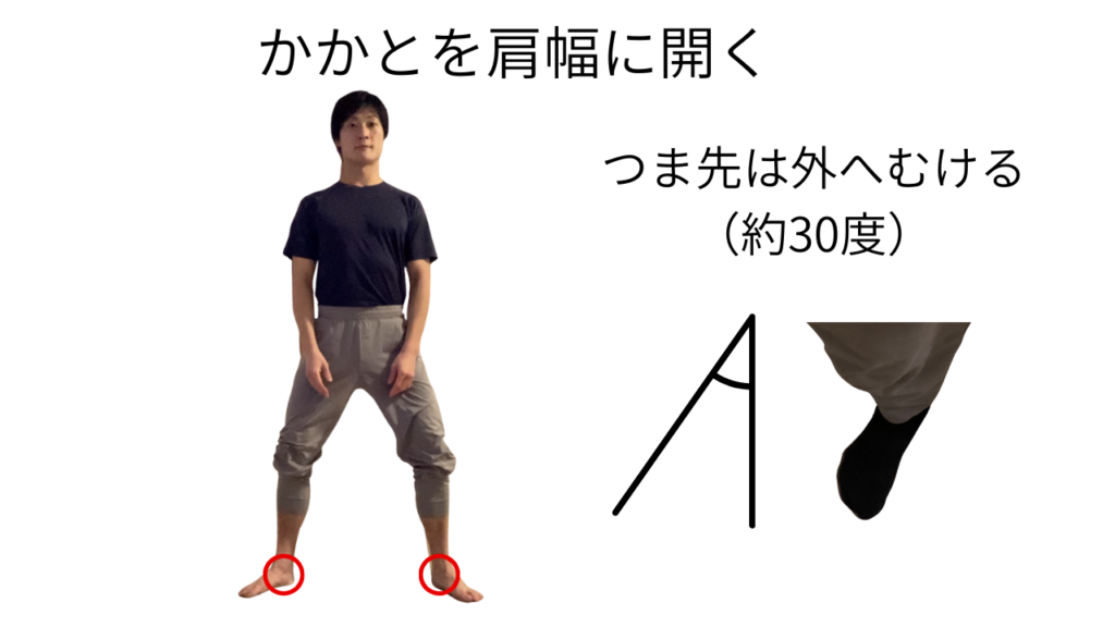 - ・肩幅が広い人は足幅も広くとる必要がある
