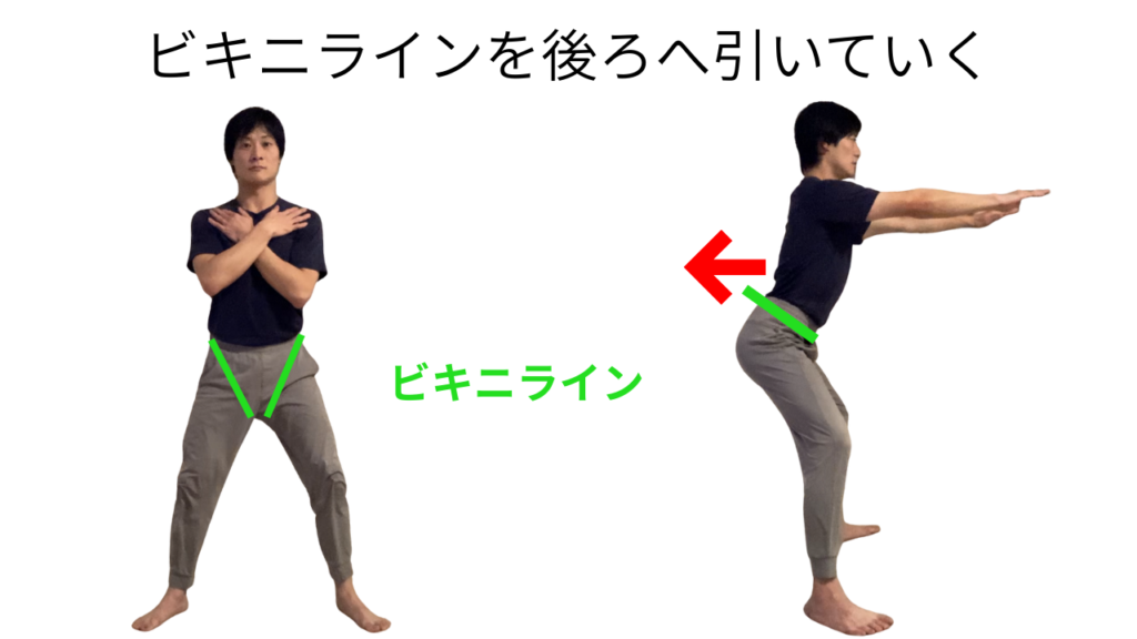 - ③太ももの付け根(ビキニライン)を後ろへ引く