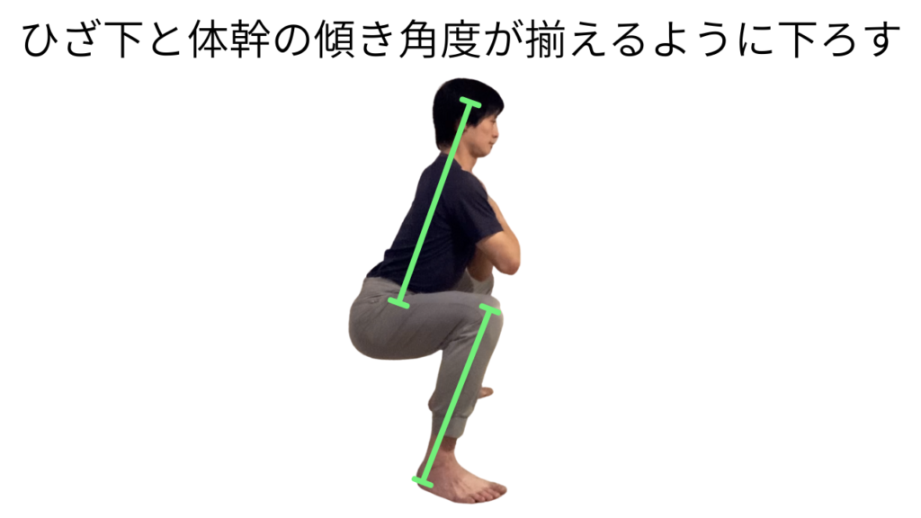 ・ひざ下の傾きと体幹の傾きの角度を揃える