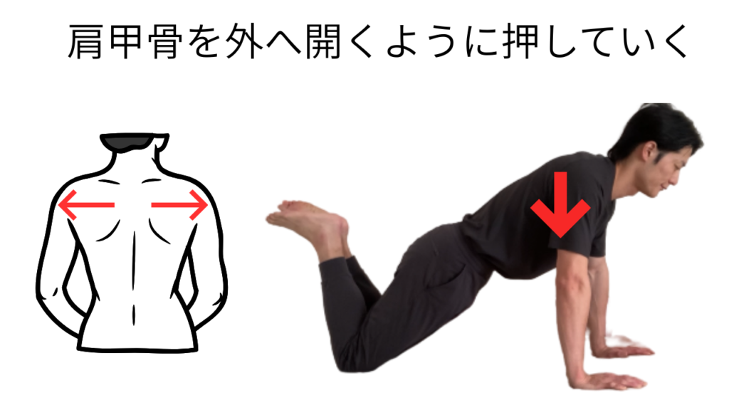 肩甲骨を寄せる動きによって、肩の位置を後方で安定させる背中の筋肉が強化されるため