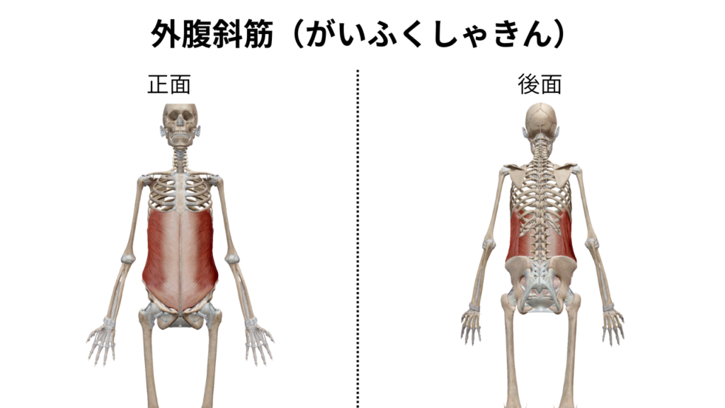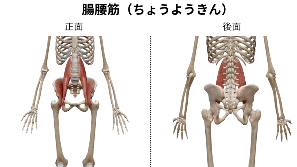 腸腰筋(ちょうようきん)、腹直筋(ふくちょくきん)、外腹斜筋(ふくしゃきん)、内腹斜筋(ないしゃきん)、大腿四頭筋(だいたいしとうきん)、脊柱起立筋(せきちゅうきりつきん)