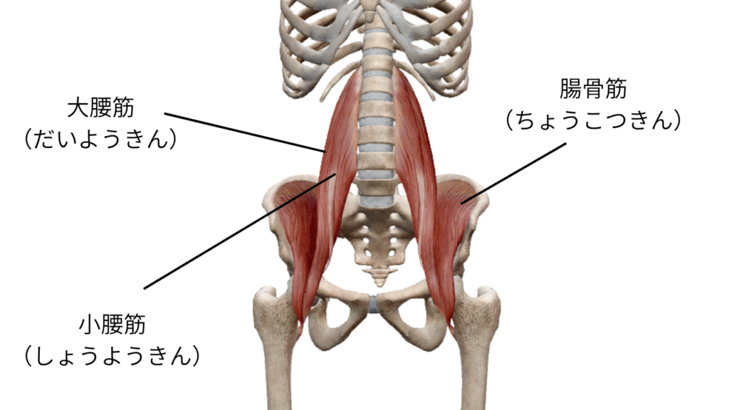 小腰筋(しょうようきん)や、腸骨筋(ちょうこつきん)と、一緒になって働くことから、