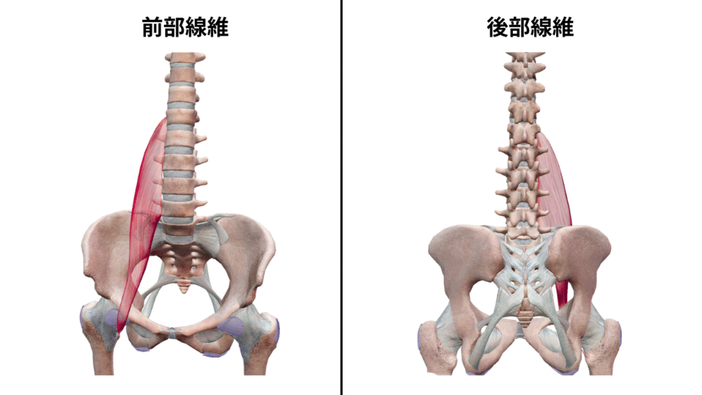 その中で、大腰筋は前部線維と、後部線維で働きが異なります。