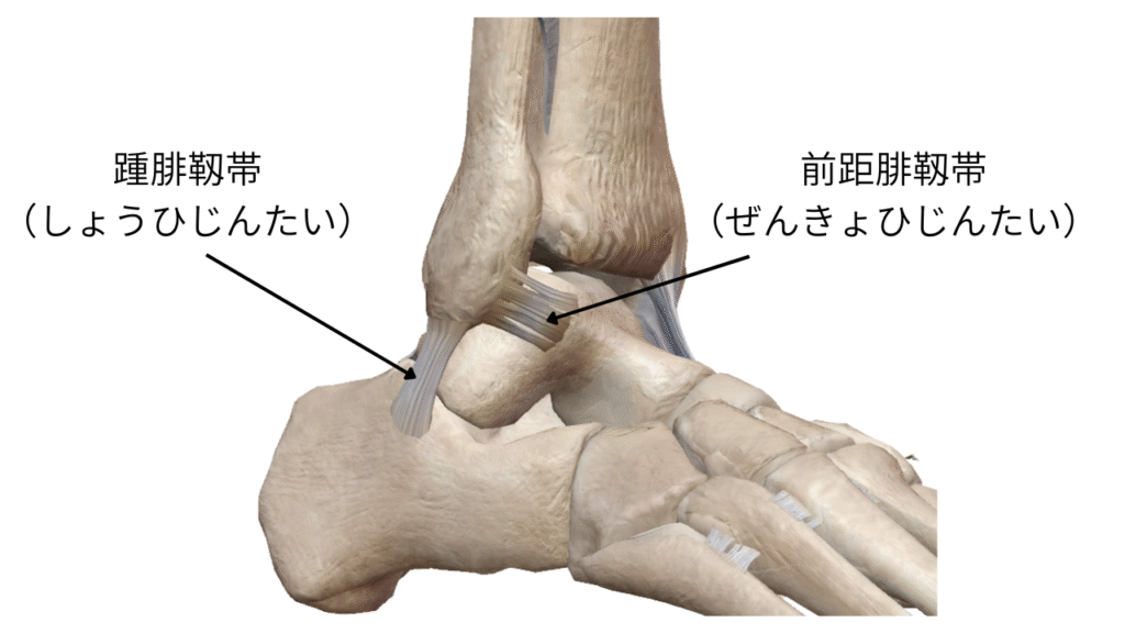 中でも、最も損傷しやすいのは、前距腓靱帯(ぜんきょひじんたい)です。