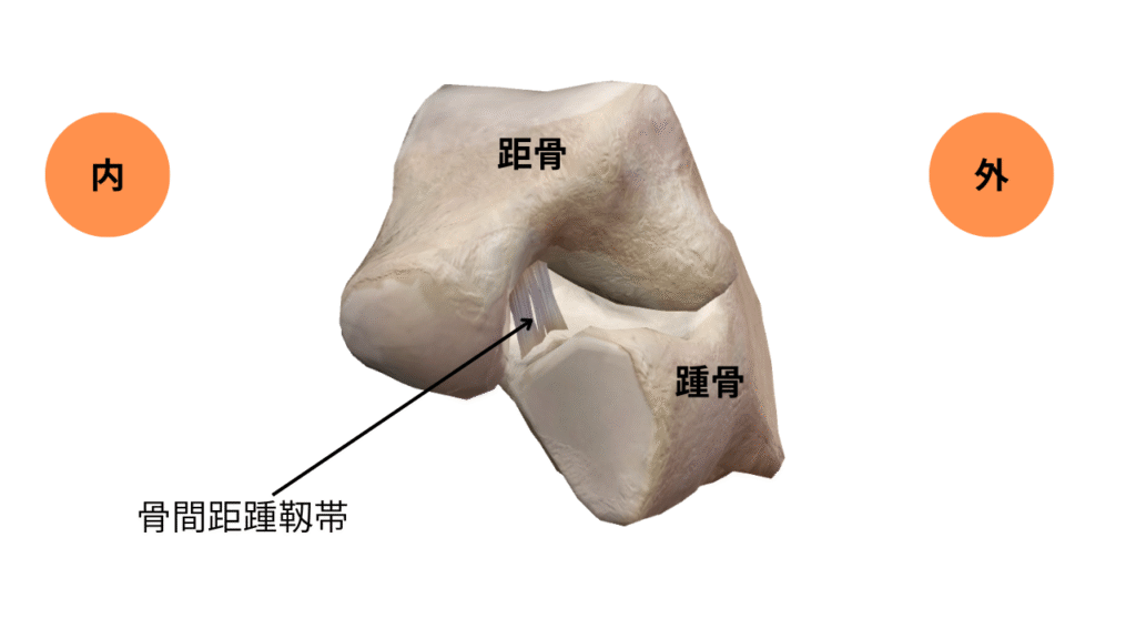 遠位脛腓関節は、前脛腓靱帯、後脛腓靱帯、骨間靱帯からなる脛腓靱帯結合によって連結されています。